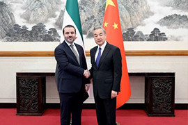 2025年11月17日,中共中央政治局委員、外交部長王毅在北京同來華訪問的敘利亞過渡政府外長希巴尼舉行會談。